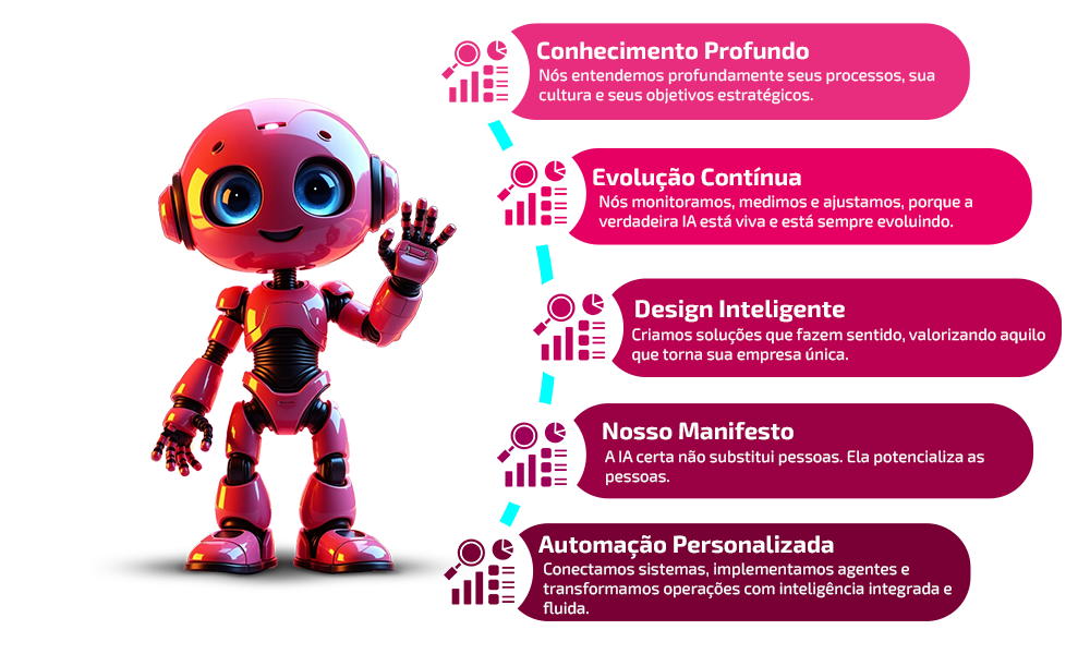 Conectamos sistemas, implementamos agentes e transformamos operações com inteligência integrada e fluida.